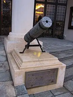 It was first used by Bulgarian anti-Ottoman revolutionaries in the April Uprising. It was used to arm the under-equipped Bulgarian rebels against the Ottoman army. Balance scale masses and pieces of metal were used as ammunition for the cherry cannon. The first cherry guns were created in the spring of 1876.[1] Later cherry guns were used by the Bulgarian anti-Ottoman revolutionaries in the Kruševo Republic and at other places of insurgency during the Ilinden–Preobrazhenie Uprising in 1903.[2][3][4] In practice, this uprising was designed as a belated replica of the April Uprising of 1876.[5]