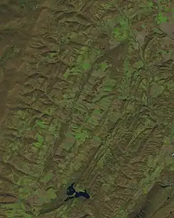 Chestnut Ridge is an elongate hill trending northeast-southwest in west-central Bedford County, Pennsylvania. It is partially forested with rural homes, farms, and notably apple orchards. Four small towns surround it: Schellsburg, New Paris, Fishertown, and Pleasantville. Shawnee State Park and Shawnee Lake lie immediately to the south of the ridge.