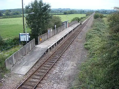 Great Western Railway operate services between Gloucester and Weymouth via Bristol Temple Meads and Westbury (8 per day each way on weekdays and Saturdays, 3-5 each way on Sundays depending on the time of year). South Western Railway used to run additional services between Weymouth and Yeovil Junction on Summer Saturdays.[5] The station is a request stop, meaning passengers wishing to board a train need to signal clearly to the driver as the train approaches.