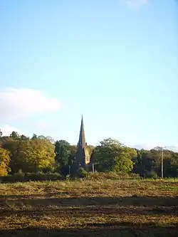 The parish church, dedicated to St. Michael and All Angels, was built in 1865 to the designs of Benjamin Ferrey[2] and contains a fine East window [1] depicting "Christ adored by the hosts of Heaven", designed by John Hardman in 1881. The chancel windows, one of which is a war memorial to parish dead of World War I and designed by Dunstan Powell,[3] are also by Hardman, while the windows in the nave were designed by Francis Skeat in 1963.[4]