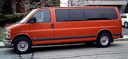 The Express passenger van was introduced with two trim lines: an unnamed base trim (geared largely towards fleet sales) replacing the Sportvan and the upgraded LS, replacing the Beauville.[6] For 2001, an upgraded LT trim was introduced, but was dropped for 2003.[29] For 2006, the trim line was revised again to the current nomenclature, with the base trim renamed LS, and LS renamed LT.[30] For 2007, the 2500 and 3500 badges on the front doors were dropped.