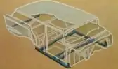 The Yeoman featured Chevrolet's new "Safety-Girder" cruciform frame. Similar in layout to the frame adopted for the 1957 Cadillac, it featured box-section side rails and a boxed front cross member that bowed under the engine, these "x-frames" were used on other 1958 to 1964 Chevys, as well as Cadillac. The rear was tied together by a channel-section cross member. [3] This design was later criticized as providing less protection in the event of a side impact collision, but would persevere until 1965.[4]