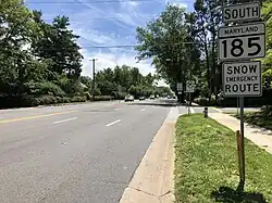 Three state highways form the northern, eastern and southern borders of the town, with a fourth lying just beyond the western border. Of the three highways directly bordering the town, the most prominent is Maryland Route 185 (Connecticut Avenue), which forms the eastern border of the town. MD 185 extends south to Washington, D.C., and north to the nearest Interstate highway, Interstate 495 (the Capital Beltway). From the north side of town, Maryland Route 410 (East–West Highway) extends eastward, providing local connections to many other suburban towns north and northeast of Washington, D.C. On the south edge of town, Maryland Route 191 extends west through Bethesda to Potomac. The fourth highway, lying just beyond the town's western edge, is Maryland Route 355 (Wisconsin Avenue), which provides many of the same connections as MD 185 does on a slightly more west alignment.
