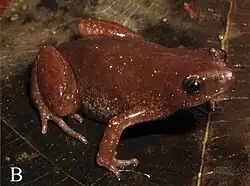- ^ a b c d e f Tonini, João F. R.; Forlani, Maurício C. & de Sá, Rafael O. (24 July 2014). "A new species of Chiasmocleis (Microhylidae, Gastrophryninae) from the Atlantic Forest of Espírito Santo State, Brazil". ZooKeys (428): 109–132. doi:10.3897/zookeys.428.7352. PMC 4140523. PMID 25161370. Retrieved 31 July 2014.