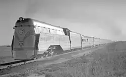 As the 1930s progressed, the CB&Q also purchased a fleet of diesel locomotives from the Electro-Motive Corporation (EMC) as the first locomotives to ever be built with aerodynamic streamlining, and they were used to pull the CB&Q's newer trains that would become known as the Zephyrs. However, some of these units would occasionally break down, and a conventional steam locomotive would be needed to take its place, resulting in the train to be de-streamlined from the front end, and the train wouldn't go as fast as the Zephyrs were designed to go. To that end, the CB&Q decided to streamline one of their own steam locomotives as back-up power for their diesel units; in late 1936, No. 3002 was taken to the CB&Q's West Burlington shops to be rebuilt with the application of a new valve gear frame, a middle Boxpok driving axle, lightweight roller bearing rods, roller bearing trailing bogies, and tender bogies. The locomotive also became the very first steam locomotive to be shrouded with stainless steel streamlining in the United States.[1]