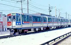 The 5000-series of railcars (numbered 5001–5714) replaced the 2200-series and 2400-series cars.[20] The cars were built by Bombardier of Plattsburgh, New York. The CTA received ten prototype cars in 2009, which underwent testing,[21] and began operating in 2011.[22] The order is for 406 cars, with options for another 308 cars. The Chicago Transit Authority planned to put the first ten cars into in-service testing in mid-April 2010.[23] The first in-service test run was made on April 19.[24][25]
