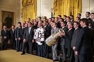 The 2013 Stanley Cup champion Blackhawks meet U.S. President Barack Obama.