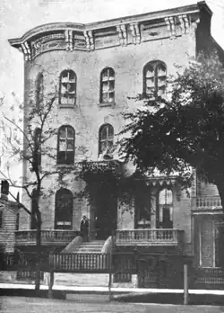 In January 1869, former members of the Dearborn Club organized a meeting in the Sherman House. Although nothing was decided, a second meeting was scheduled, and there a resolution was passed to create a new club for 100 Chicago citizens. For $100, a gentleman could join the Chicago Club. Wadsworth was elected the first president.[3] Stager, Charles B. Farwell, George Pullman, George & David Gage, and Wirt Dexter each lent the club $500 to cover early expenses. Other charter members included Robert Todd Lincoln, the President's son, Perry H. Smith, the railroad magnate, Potter Palmer, and (later) Marshall Field. [4] Former state representative Edward S. Isham drafted incorporation papers and Wadsworth delivered them to the state capitol of Springfield. The club then rented the former Henry Farnam mansion on the corner of Michigan Avenue between Jackson and Adams Streets. The first meeting of the Chicago Club was held on May 1, 1869.[5]