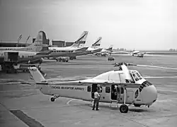 Chicago Helicopter Airways was a short-hop commuter service that ran between O'Hare International Airport, Chicago Midway International Airport, Meigs Field, Winnetka, Illinois, and Gary, Indiana from November 12, 1956 to 1974.[1][2][3] Incorporated on 13 November 1926 as Helicopter Air Service, mail services were provided to 54 post offices, three times per day.[1] It started carrying passengers in 1956, when a government program offered grants to promote helicopter commuting.[4][3] In 1960 126 flights carried 6,000 passengers every day, primarily using Sikorsky S-58C helicopters, a civilian version of the Sikorsky H-34. With the disaster of Chicago Helicopter Airways Flight 698, business quickly dropped off so that by 1963 it was down to 3,000 passengers per day. Grant money ran out in 1966. CHA made an unsuccessful try at a limited-service comeback in 1969 and the company closed down in 1974.[2]