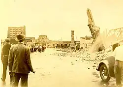 The Chicago Union Stock Yards fire of 1934 was the second-most destructive fire in the city's history, after the Great Chicago Fire of 1871, in terms of property damage and buildings lost.[1] The Union Stock Yards of Chicago, Illinois in the United States were, at the time, the commercial butchering and meatpacking center of the Midwest. The financial cost of the fire, which began Saturday, May 19, 1934,[2] was estimated at US$8 million (about $188 million today).[3] Six square blocks were destroyed.[4] One employee and thousands of animals died.[2]