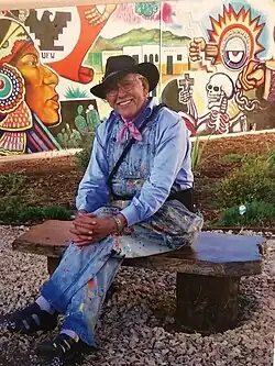 Many non-Chicanos also participated including Anglo artist, Michael Schnorr.[20] Eventually a core of about 16 artists were dedicated to finishing the murals[15] with many well-known Chicano artists and groups participating, such as members of the Royal Chicano Air Force.[20] Over time, more vegetation was planted to create a cactus garden.