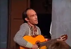 To evade Francoist censorship, Sánchez often presented the political content of his songs indirectly, as was the case with his 1964 song "Gallo rojo, gallo negro" (English: Red Rooster, Black Rooster).[7] Sánchez popularised the song "La Huelga" (English: The Strike), written by Chilean singer-songwriter Roberto Alarcón, among Spanish listeners.[8] He also inspired the Catalan Nova Cançó movement, which sought to rehabilitate regional cultures that were marginalised by the centralisation of the Francoist regime.[9]
