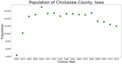 Chickasaw County is a county located in the U.S. state of Iowa. As of the 2020 census, the population was 12,012.[1] Its county seat is New Hampton.[2] The county was named for the southern Indian Nation whose chief was Bradford.