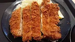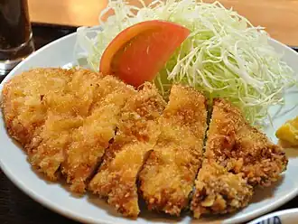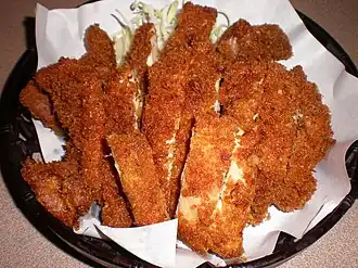 Chicken katsu (Japanese: チキンカツ, Hepburn: chikinkatsu), also known as panko chicken or tori katsu (鶏カツ) is a Japanese dish of fried chicken made with panko bread crumbs. It is related to tonkatsu, fried pork cutlets. The dish has spread internationally and has become a common dish served at Japanese and East Asian restaurants worldwide.[1][2]