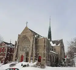 In Connecticut, they designed St. Anne Catholic Church (1910 and 1922) in Waterbury and St. Stanislaus Catholic Church (1913) in New Haven;[4] in Maine, the Town Hall (1900) in Old Orchard Beach, the former St. Joseph's Academy and Convent (1909, NRHP-listed) in Portland, St. Andre's Catholic Church (1910, NRHP-listed) in Biddeford and St. David Catholic Church (1911, NRHP-listed) in Madawaska;[1] in Massachusetts, the Academie Brochu (1899, NRHP-listed) in Northbridge;[5] and in New Hampshire, the former St. Francis Xavier Catholic Church (1898), now St. Mary and Archangel Michael Coptic Orthodox Church, in Nashua[6] and the former St. George's Catholic School (1898, NRHP-listed) in Manchester.[7]