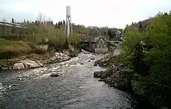 The Chicoutimi River is a watercourse of eastern Quebec, Canada. A tributary of the Saguenay River, which it meets in the city of Saguenay, it is the 26.2-kilometre-long (16.3 mi) main outlet of Kenogami Lake, which rises from a watershed of 3,390 square kilometres (1,310 sq mi) in the Laurentides Wildlife Reserve. Entirely located in the Chicoutimi borough of Saguenay, it is the most urbanized and dammed river in Saguenay–Lac-Saint-Jean.[1]