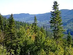 The watershed of the Chicoutimi River, with an area of 3,390 km2 (1,310 sq mi), holds, with those neighboring it, the Quebec record of precipitation on its territory (approximately 1.2 m (3 ft 11 in) of water per year).[8] Located mainly in the mountainous region (40% of its surface is more than 650 m (2,130 ft) above sea level.[5] Du Laurentides Wildlife Reserve, the basin follows, in several places, steep slopes. The latter would also include three sub-basins (rivers Pikauba, Cyriac and aux-Écorces), two reservoirs (Kenogami and Pikauba) and part of the territory of each of the 5 former cities of Chicoutimi, Laterrière, Lac-Kénogami, Arvida and Jonquière which are now part of city of Saguenay.