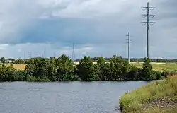 The first section, delimited by the dams of Portage-des-Roches and Pont-Arnaud, would represent a part in upstream of the river almost 20 km (12 mi) in length. Located in the plain of Laterrière, south of Chicoutimi, this section would have a drop of barely 17.3 m (57 ft)[5] and would form a meander and a reservoir retained by the dams of Pont-Arnaud and Chute-Garneau.