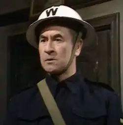 Born in 1893, Hodges is a crude, brash and meanspirited greengrocer.[2] Following the outbreak of war, Hodges has become the air raid warden (later chief air raid warden) of the fictional Walmington-on-Sea.[1][2] The position has given him considerable power which has gone to his head. He is an uncouth and coarse man, at times as pompous and officious as his chief rival Captain Mainwaring, and delights in antagonising the Home Guard platoon, in particular Mainwaring, whom he frequently refers to as "Napoleon".[2]