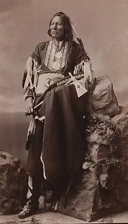 Chief White Eagle (c. 1825 – February 3, 1914) was a Native American politician and American civil rights leader who served as the hereditary chief of the Ponca from 1870 until 1904. His 34-year tenure as the Ponca head of state spanned the most consequential period of cultural and political change in their history, beginning with the unlawful Ponca Trail of Tears in 1877 and continuing through his successful effort to obtain justice for his people by utilizing the American media to wage a public relations campaign against the United States and President Rutherford B. Hayes. His advocacy against America's Indian removal policy following the Ponca Trail of Tears marked a shift in public opinion against the federal government's Indian policy[2] that ended the policy of removal,[3] placing him at the forefront of the nascent Native American civil rights movement in the second half of the 19th century.