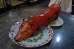 Sometimes the flesh of butchered children was sold on markets.[62] During a famine induced by the fighting between the Jin and the Song dynasty in the 12th century, little children were praised for their "superior tastiness" and sold whole to those who wanted to prepare and serve them like suckling pigs or steamed whole lambs. Like the sale of human flesh at inns, such customs indicate that the consumption of such flesh also had a culinary side, even in times of famine.[63][64]