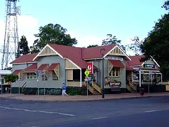 The Childers Post Office is a timber post office situated on a corner block on the northern side of Childers' main street opposite the Court House. It was built to a standard government design in 1890 and substantially extended by the Queensland Government Architect's Office in 1910, reflecting the growth of Childers and Commonwealth policy to improve the postal facilities of towns associated with agricultural and pastoral expansion. Currently the building operates as a gift shop but continues to provide post office services.[1]