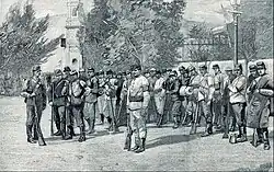 ![]() Picture of the rebel fleet attacking Valparaíso, late August 1891, published in Le Petit Journal. | |||||||