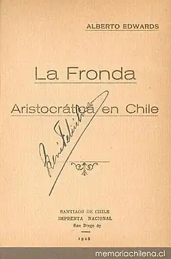 Later, the lawyer and academic Alberto Edwards published La fronda aristocrática en Chile (English: The aristocratic frond in Chile), a book that criticized the gentrification of the Chilean aristocracy due to its lack of connection with reality, its lack of ability to react to crisis and its economic attitude. Edwards criticized liberalism in the book, accusing it of uprooting the nation of its traditions and its founding values. This work was strongly influenced by The Decline of the West by German philosopher Oswald Spengler, who he cited and studied; the investigators Renato Cristi and Carlos Ruize define Edwards as a "conservative-revolutionary" thinker. For his part, fellow academic Carlos Keller, student of Spengler and member of the National Socialist Movement of Chile, published La eterna crisis chilena (English: The eternal Chilean crisis), a book of political economy and sociological analysis that showed what Mario Góngora called “the nationalist response to the crisis”.