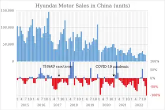 - ^ a b c "South Korea's Hyundai, Kia sales halve in China amid diplomatic spat over THAAD". South China Morning Post. 5 April 2017. Archived from the original on 2017-04-05.