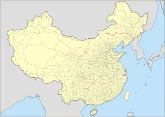 China National Highway 303 (G303) runs from Ji'an, Jilin to Xilinhot, Inner Mongolia. It is 1,263 kilometres in length and runs northwest from Ji'an through Jilin and Liaoning and ends in Inner Mongolia.