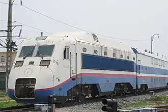 The DDJ1[Note 1] is a first generation high-speed electric multiple unit built for China Railway, built by Zhuzhou Electric Locomotives, Changchun Railway Vehicles, Sifang Railway Vehicles, Tangshan Passenger vehicle factory, Nanjing Puzhen and developed by Zhuzhou Electric Locomotive Research Centre. It was built in 1999, and was an experimental vehicle, with only one set built, as it did not enter mass production. The design was well received as part of national science in the 9th five year plan. The DDJ1 is in a push–pull configuration, with only one locomotive in the set and the other end being a trailer with a driver's cabin.[1]