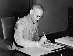 The ROC co-founded the United Nations Relief and Rehabilitation Administration (UNRRA) in 1943 (prior to the establishment of UN).[20] UNRRA provided supplies and services to areas under occupation by the Axis Powers. The largest project undertaken by UNRRA was the China program which had a total estimated cost of $658.4 million. UNRRA China Office was opened in Shanghai at the end of 1944, and operated until the official termination of the office on 31 December 1947. Final work and responsibilities were finished by March, 1948.[21] UNRRA cooperated with Chinese National Relief and Rehabilitation Administration, led by Jiang Tingfu, to distribute relief supplies in China.[22] UNRRA functions were later transferred to several UN agencies, including the International Refugee Organization and the World Health Organization.