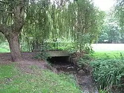 In the 1960s the River Quaggy within Chinbrook Meadows and other parks was channelized into long straight concrete culverts to alleviate flooding and was closed off behind tall hedges and iron fences, this cut the park in two with the larger part to the east of the river. In the early 2000s however the concrete channel with its fences and hedges was demolished and river was remodeled to give a natural, meandering appearance with a small flood plain; this was to encourage wild plants and animals back to the area and to be more pleasant and attractive for the public. There are several wooden foot bridges over the river, that replaced the concrete ones with iron fences. The regeneration was completed on 1 October 2002 and cost a reported £1.1million.[6][7] Since the restoration Chinbrook Meadows has won the Green Flag Award in three years in a row, from 2005-07[8] Shortly After the regeneration was completed the same river was given a similar regeneration further down stream within Sutcliffe Park, a mile and a half to the north.[9][10]