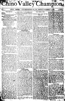 - ^ Chino Valley Champion, October 29, 1897, page 7