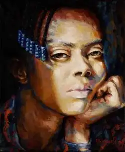 Chinwe Ifeoma Chukwuogo-Roy MBE (2 May 1952[1] − 17 December 2012)[2] was a visual artist who was born in Awka (Oka), Anambra State, Nigeria, but spent much of her young life in Ikom on the Cameroon border, before moving back to the family home at Umubele in Awka. She lived in Britain from 1975.[3] Her paintings, prints and sculptures are predominantly figurative, in the genres of portraiture, still-life, landscape and narrative subjects. She won international attention in 2002 for being the first[4] of only two Nigerian artists (the other being Ben Enwonwu) to have been allowed to paint official portraits of Queen Elizabeth II.[5][6]