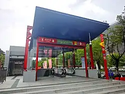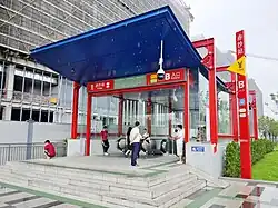 The station has 3 exits for entering and exiting, of which Exit D has an elevator. In addition, in order to comply with the fire evacuation requirements of the Line 12 platforms when they opened, there is an unnumbered entrance and exit at the southwest corner of the station for passengers to enter and exit.