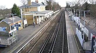 Chiswick railway station is a railway station within the Grove Park residential area of Chiswick in the London Borough of Hounslow. The station is on the Hounslow Loop Line, and all trains serving it are operated by South Western Railway. Journey time into London Waterloo is approximately 25 minutes and Clapham Junction 15 minutes. The station is in Travelcard Zone 3 and is Grade II listed.[2]