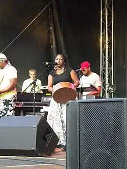 Chiwoniso Maraire (5 March 1976 – 24 July 2013) was a Zimbabwean singer, songwriter, and exponent of Zimbabwean mbira music. She was the daughter of Zimbabwean mbira master and teacher Dumisani Maraire[1] (and former officer in the Zimbabwe Ministry of Sports and Culture in the early 1980s).[2] Describing the mbira, an instrument traditionally used by male musicians,[3] she said, "It is like a large xylophone. It is everywhere in Africa under different names: sanza, kalimba, etc. For us in Zimbabwe it is the name for many string instruments. There are many kinds of mbiras. The one that I play is called the nyunga nyunga, which means sparkle-sparkle."[4]