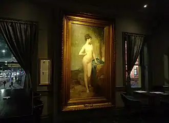Upon Fitzgerald's death in 1908, the painting was purchased at auction by Henry Figsby Young, owner of the Young and Jackson Hotel.[4] In 1908, Young installed the painting in the hotel's saloon bar.[4] Chloé is to remain part of the hotel forever, as decided by the National Trust and Heritage of Victoria in 1988.[8]