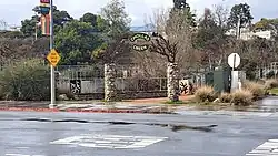 In January 2022, a California sea lion was found on California State Route 94, where bystander motorists and then California Highway Patrol officers, had to divert traffic until it was taken by SeaWorld San Diego personnel for assessment.[73] One of the theories at the time was that he had traveled from San Diego Bay up Chollas Creek to Highway 94 – a route of 3.5 miles (5.6 km).[73] The first time this particular sea lion required the assistance of SeaWorld personnel was in November 2021, when it had made its way away from the water onto Harbor Island Drive near San Diego International Airport.[74][75] In February 2022, after the attachment of a flipper identification tag and rehabilitation, the sea lion was released into the ocean.[76] In April 2022, the sea lion, who was given the name of Freeway, was found traveling up Chollas Creek in the Logan Heights neighborhood more than a mile away from ocean water, towards where he was found in January of that same year.[74][77] After being recovered from Chollas Creek, the sea lion was retained at SeaWorld.[77] In April 2023, the sea lion was euthanized at SeaWorld following deteriorating health due to a progressive disease.[75][78]