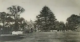 Lady Ella Monica Sackville Russell (1854-1936) was born in 1854 in Buckhurst Park in Sussex, the childhood home of her mother Elizabeth Sackville West. Her father was Francis Charles Hastings Russell, 9th Duke of Bedford.[17] She lived at Woburn Abbey, which was the ancestral home of the Dukes of Bedford, for many years and did not marry. Her father died in 1891 and she inherited a large amount of money. In the following year she bought Chorleywood House and started a long program of extensive renovations and additions. She modified and enlarged the house. She also developed the estate to be virtually self-sufficient, with her own farms and market garden. She created formal gardens and parkland, and built cottages for her chauffeur and gardener behind the house. In addition she installed electricity using her own generator housed in a building near the summerhouse.[18] Besides owning Chorleywood House she also had a London town house in Princes Gate. She also had an interest in art and painted many notable pictures some of which were recently sold at Christies.[19]