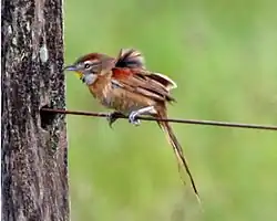 - ^ a b c d e f g h Remsen, Jr., J. V. (2020). Chotoy Spinetail (Schoeniophylax phryganophilus), version 1.0. In Birds of the World (J. del Hoyo, A. Elliott, J. Sargatal, D. A. Christie, and E. de Juana, Editors). Cornell Lab of Ornithology, Ithaca, NY, USA. https://doi.org/10.2173/bow.chospi2.01 retrieved November 20, 2023
