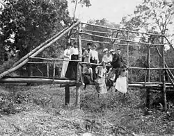 In 1882, citizens of Boonville seriously considered piping Chouteau Springs mineral water from Chouteau Springs to Boonville, a distance of about ten miles.[16] By the late 1880s, Chouteau Springs Resort had several turreted structures (gazebos) from which to obtain the mineral water, a large dancing pavilion, a pool, and ample picnic grounds. Families from St. Louis and beyond would spend a week or more at Chouteau Springs Resort.[17]