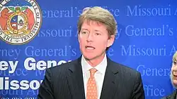 Christopher Andrew Koster (born August 31, 1964)[1] is an American lawyer and politician who served as the 41st Attorney General of Missouri from 2009 to 2017. Before that, Koster was elected three times as prosecuting attorney of Cass County, Missouri, and served four years as state senator from Missouri's 31st Senatorial district.