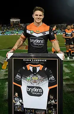 Chris Lawrence (born 19 October 1988) is an Australian former professional rugby league footballer who played his entire career as a centre and second-row for the Wests Tigers in the NRL, and has played for Australia at international level.