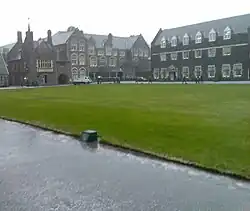 Christ's College moved to its present site in 1856, with 35 pupils and a staff of three. This location, adjacent to the Government Domain (now Hagley Park), provided the college with room to expand, and the school gradually began to acquire additional buildings. The first of these building were wooden, providing homes for the staff and their families and an increasing number of boarders. By 1863, Big School, the first of the stone buildings, had been built on the west side of the quadrangle in which all classes were taught (in present-day it is the school's library with additions by Sir Miles Warren and currently the oldest educational building still in use in New Zealand), followed in 1867 by the Chapel.[2] The school developed slowly around this central quadrangle, and today the 'quad' is treated with reverence, and therefore students are not permitted to walk on it, only staff members and permitted visitors. The Cathedral Grammar School used to be the Lower School of Christ's College when it struggled financially from 1895 to 1922.