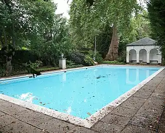 Christ's College bathing pool stands in the Fellows' Garden, to the north of the Fellows' Building, in the centre of Cambridge, England.[a] There is some debate as to the date of the pool's construction. Historic England states that the pool was in existence before 1688,[2] and most sources follow this, supporting its claim to be the oldest outdoor swimming pool in England.[3] Simon Bradley, in the Cambridgeshire volume in the Buildings of England series, revised and reissued in 2015, gives a later date, of the mid-18th century.[4] The pool was originally fed by water from Hobson's Conduit, a watercourse developed in the early 17th century to bring fresh water to the city.[5]