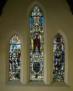 The windows of the church were originally planned to be glazed with plain glass with ornamental geometric tracery. Over the years these were replaced by some modest coloured stained glass panels commemorating worthy members of the resident community. The East Window originally showed Christ the Good Shepherd and was installed to commemorate Queen Victoria's Diamond Jubilee in 1897. All the windows were destroyed at the end of the Second World War. The present East Window was designed by Frederick W. Cole, who had served during the war as a captain in the Royal Engineers designing camouflage, but was in fact a member of the Royal Society of Arts and the British Society of Master Glass Painters, and chief designer for the renowned Westminster firm of stained glass-makers William Morris and Co. which made the window. The Royal Engineers were responsible for repairing the war-damaged church for use as the Garrison Church (including removing shrapnel from the pews and rewiring the church). As the inscription at the bottom of the central panel shows, the window is "Dedicated to the Glory of God by the British Troops in Austria 1945-1948". It commemorates the presence of British troops in Austria and the part played by the British 8th Army in the liberation of the country.