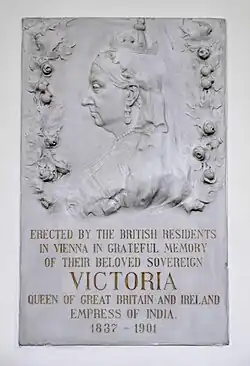 A marble relief in the centre of the south wall commemorates Queen Victoria. It was erected after her death in 1901 and is an early example of the work of the sculptor Anton Hanak (1875–1934), whose more typical work can often be seen adorning the façades of Vienna Council tenement blocks of the 1920s.