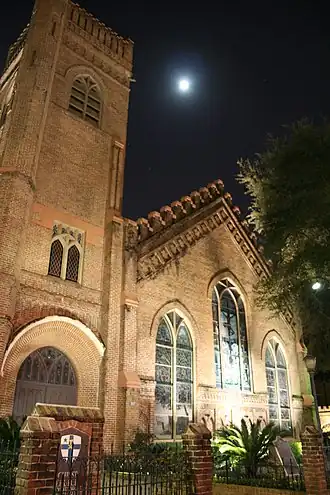 Located at 1117 Texas Avenue in Downtown Houston, the current building dates from 1893.[7] In 1938 the building suffered a major fire. A firefighter sprayed down the ornately carved rood screen to prevent its destruction, and it survived with only minor damage.[1] Everett Titcomb composed the anthem "Behold Now, Praise the Lord" for the rededication and centennial of Christ Church.[8]